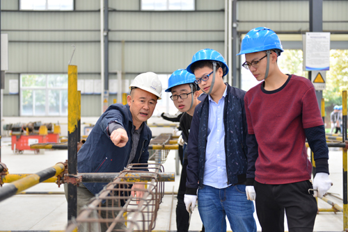 進(jìn)入建筑系的實(shí)訓(xùn)基地,轟隆作響的機(jī)器聲和人人都必須佩戴的安全帽更是讓人感覺(jué)置身工地。100多名學(xué)生正在分組進(jìn)行鋼筋工、模板工、架子工等五個(gè)工種的實(shí)訓(xùn)操作。正帶領(lǐng)學(xué)生實(shí)訓(xùn)操作的鋼筋工劉師父已從事這一工種20多年,擁有豐富的操作經(jīng)驗(yàn)和熟練的操作技術(shù)。先觀摩師父演練,再自己動(dòng)手操作,多方面的專業(yè)素養(yǎng)就在這樣的言傳身教中形成。