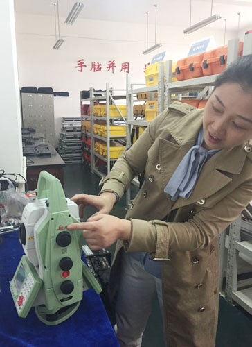 測(cè)繪系凌燕老師向記者展示Leica測(cè)量機(jī)器人